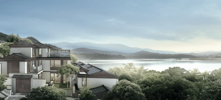 有别于传统中式的冷寂,仙女湖小镇的院墅产品呈现出更为经典的当代感。比如,中式大屋顶抽象为简约轻巧的形态韵味;院墙在保留山地民居情怀的前提下,以石材与玻璃等材质,顺应山势呈现出独特的时代气息;门窗在传统范式基础上,增大了开间尺度,尽可能将阳光与风景迎入室内。