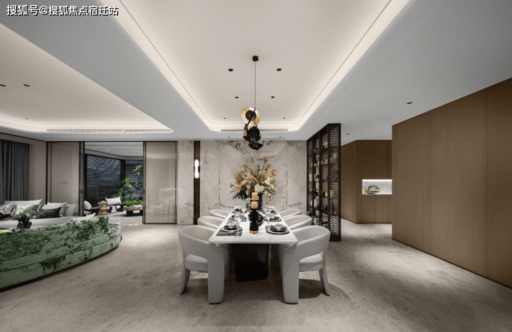以空间收纳欢悦的时光,为生活赋予艺术的慰藉。约270°环幕社交三联厅,相连开合厅,通过空间的布局和光影的配合,场域与场域的贯通,营造为充满艺趣的社交场景,混合交叉又充满个性,开合之间,私密会客、开放式交流,家庭成员的个性需求,都一一得到照顾。