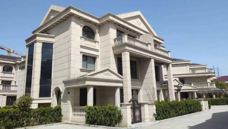 小区建筑设计以简欧风格为主,外墙干挂大理石,整体是浅米黄色调。四周采用铝合金断桥双层中空玻璃采光窗装饰和庄重石柱,为别墅的豪气程度增添色彩。样板房室内装修为轻奢和简欧混搭风格,自带高级感的设计元素彰显了住户的气质。(结构形式采用砖混结构,优点是保温隔热效果好,缺点是整体性较差,不能擅自拆改墙体。)