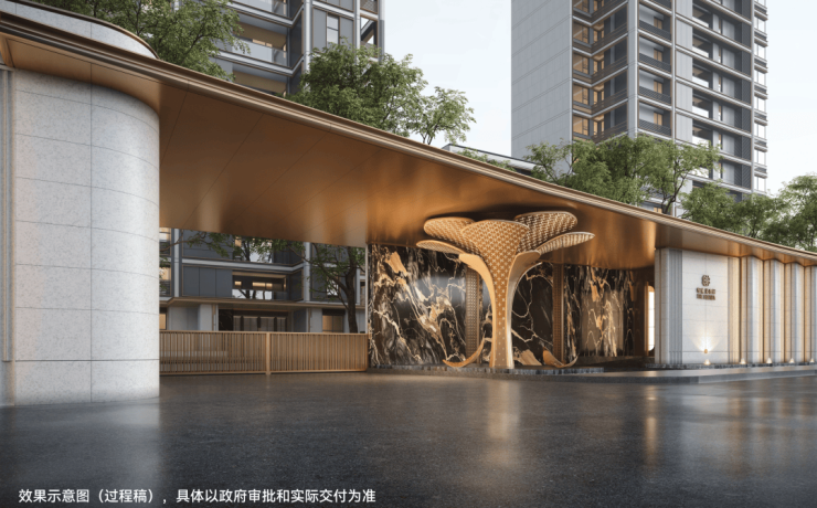 像苏州地王绿城玫瑰园,引入如凡尔赛宫的孟莎式屋顶的环岛式落客区,采用古罗马柱廊设计,整体空间超100米,法式宫廷气场非常恢弘;入口空间源自凡尔赛宫镜厅的宝格绿奢石,就像绿色“珠宝盒”,归家的高贵奢华感被拉满。