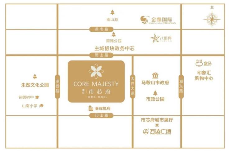 每一座城市的黄金中芯,都是时代与文明共铸的永恒图腾。马鞍山政务区,立于黄金十字中轴,雨山路、太白大道等主动脉纵横交错,这里作为城市政治、交通、商业与文化心脏,以全维度罕得资源,构建中枢生活版图。