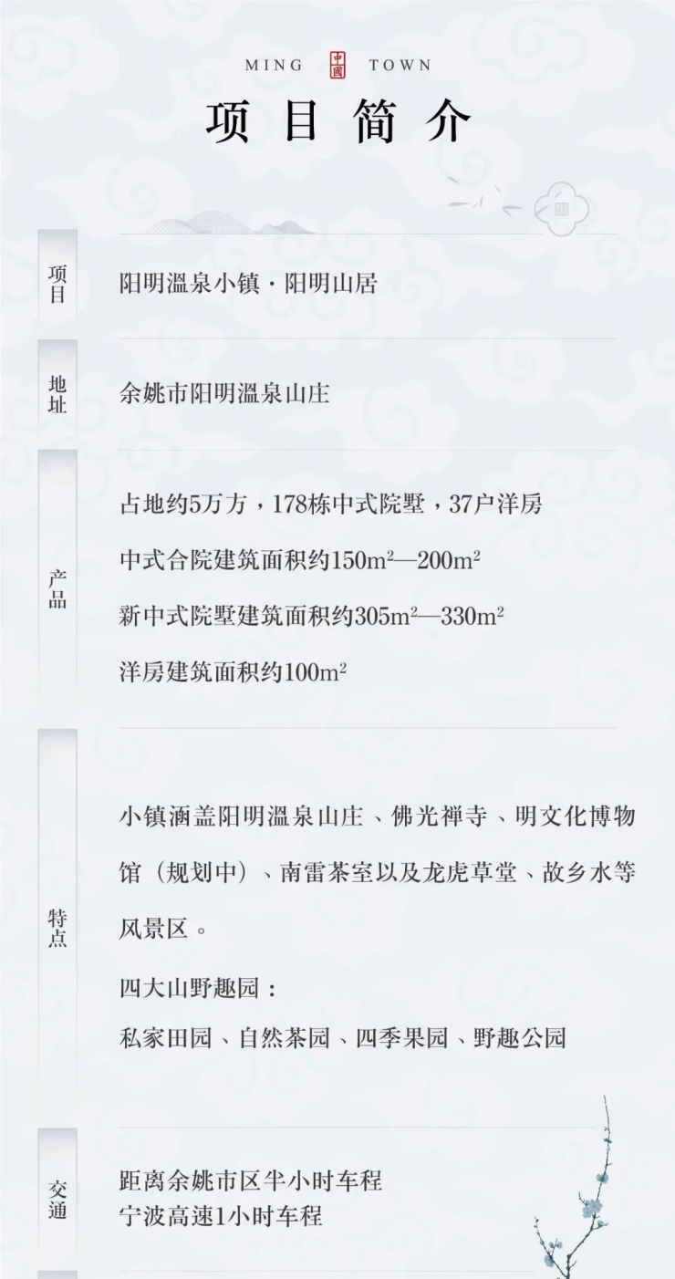 阳明温泉小镇(建面约)150~200㎡中式小合院,承载传统的东方中式文化底蕴、闲雅的明风美学生活,布局充分考虑到中国的邻里文化、街巷文化,构成一片记忆中的坊巷生活,天地围合,一院一世界,以千年的居住情怀,诠释中式诗意院落的生活气质。