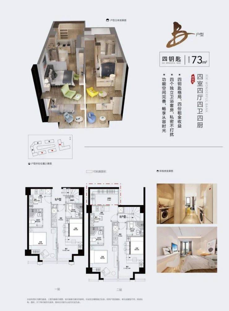 西溪美岸的公寓便是当下购房者热抢的多钥匙公寓,主力户型建面45-73㎡,最多买一套得四套!
