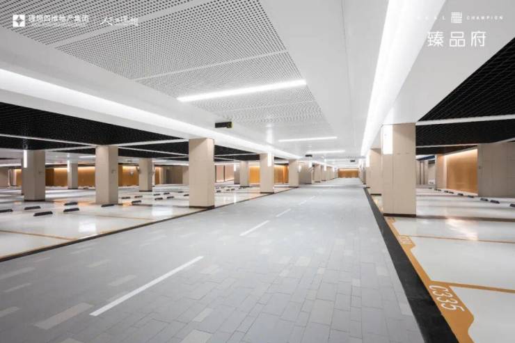 当然,更炫技的还是它的车库。传统地下车库,顶多隔3个车位就有支撑柱,但理想荷院两根支撑柱间的距离,最长能到13.8米,千万级房车Elemmengt Palazzo都能停得下。再加上约3.2米的净高和大片铝格栅吊顶,真是气场强大。抬头细看,地库顶部的喷淋、烟感与铝扣板拼缝还全部横竖对线。不得不感叹,这真是一家“处女座”房企。0