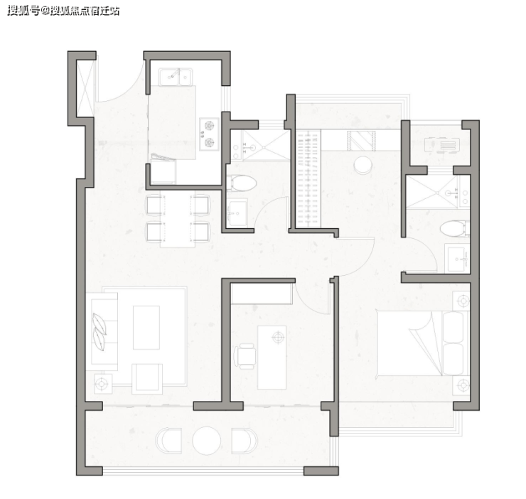 项目主要面向小型家庭结构,户型面积段在82-112㎡之间。在极其有限的场地设计条件下,为了实现更好的居住感受,所有户型均设置为三面宽朝南,对面积的实用性与弹性进行了创新。尤其是89㎡户型,三面宽设计,针对单身青年、新婚夫妻、三口之家、三代同堂均配置了不同的居住解决方案,设计尝试在户型的舒适度与可变性之间找到平衡点。