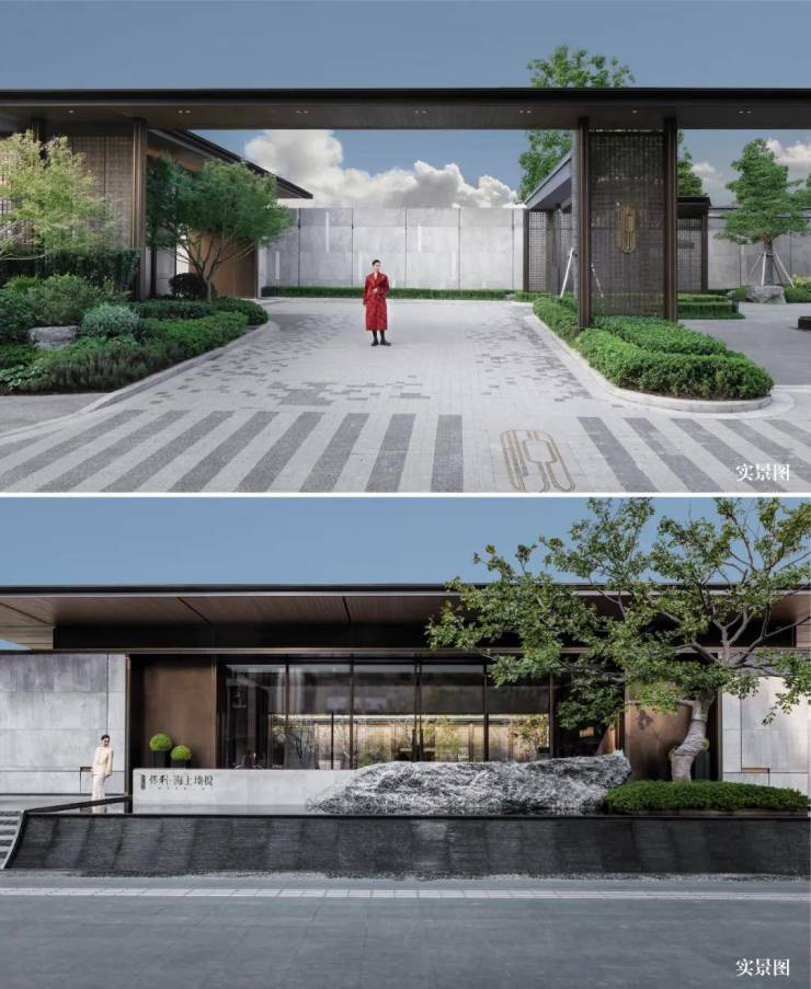 ◐爱马仕专色大象灰石材,景墙与建筑同等标准