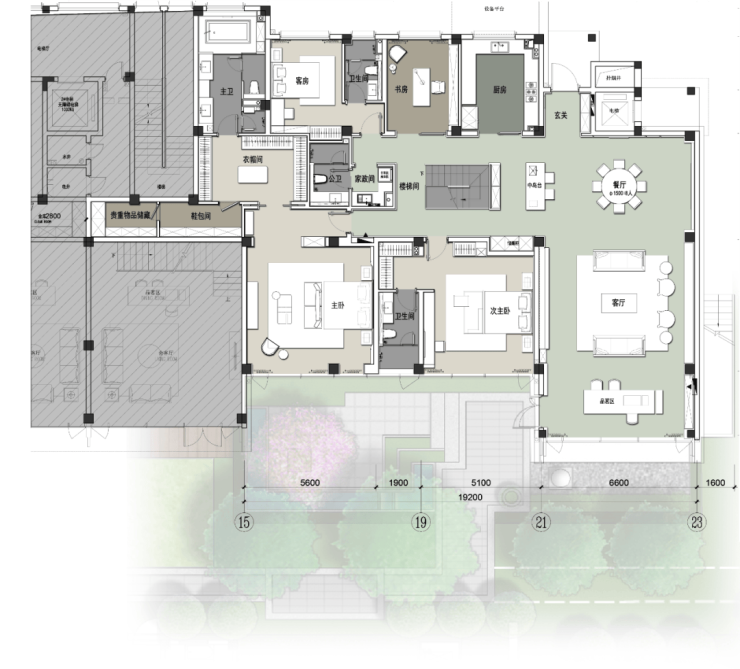 咬合式4层复式建筑,以公共区域与私人区域的完美结合,为家庭打造从容的生活方式。院子、复式双厅,可为不同年龄段的家庭成员提供生活公共区域,满足家庭成员生活需求;露台、地下室打造家庭主人私密会客、臻趣雅致的私人空间。