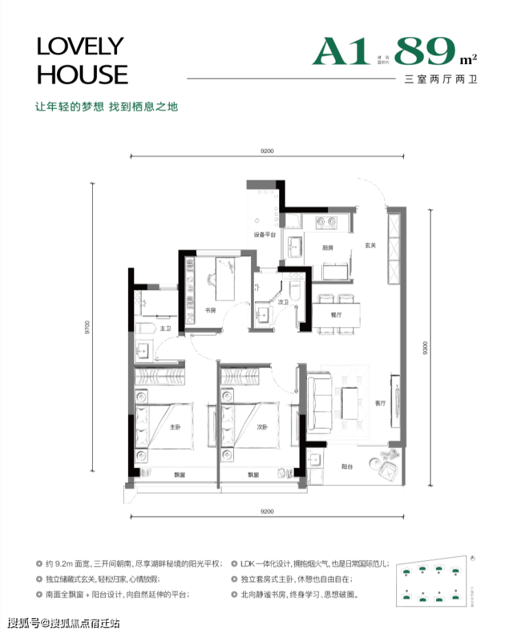 重要的是,这个户型还是杭州建面约89㎡三室两厅两卫稀缺绝版户型,这在杭州楼盘起步户型逐渐做大的当下,对于很多预算有限的刚需家庭来说,更是一个兼具实用性和低总价的首选!