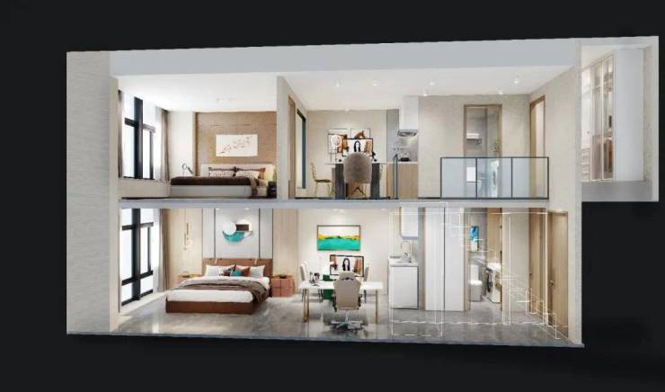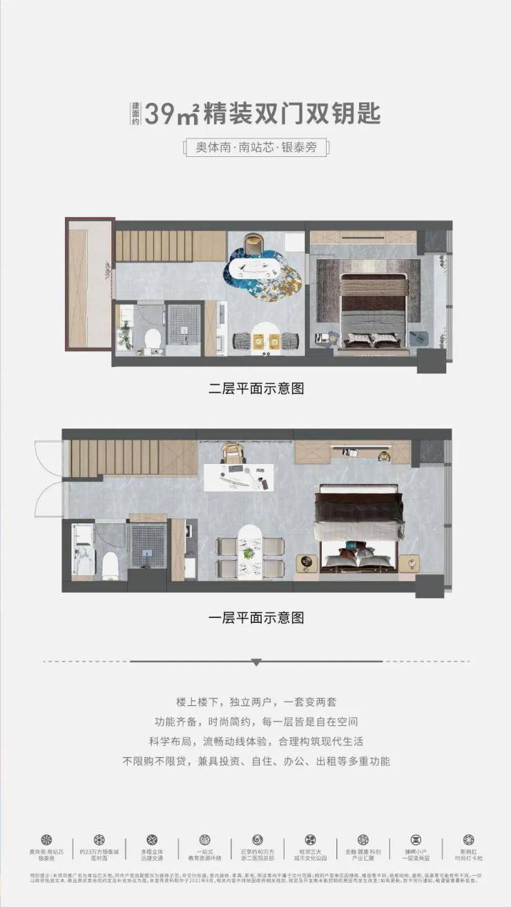 4. 臻稀小户低总价:精装双门双钥匙,层高约4.5米,买一层享两层,小面积低总价、不限购不限贷,兼具投资、自住、办公、出租、养老多重功能。