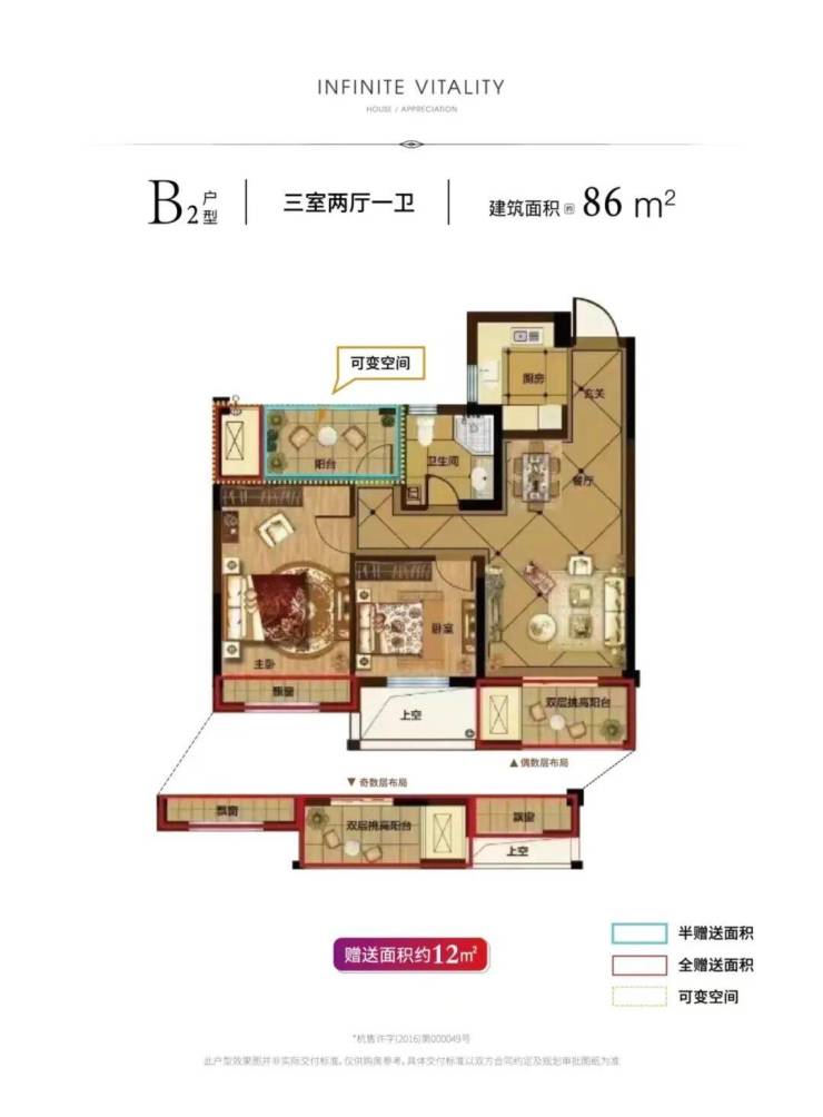 面积段:73方两房、86、89方三房、116、119、133方大三房/四房;
