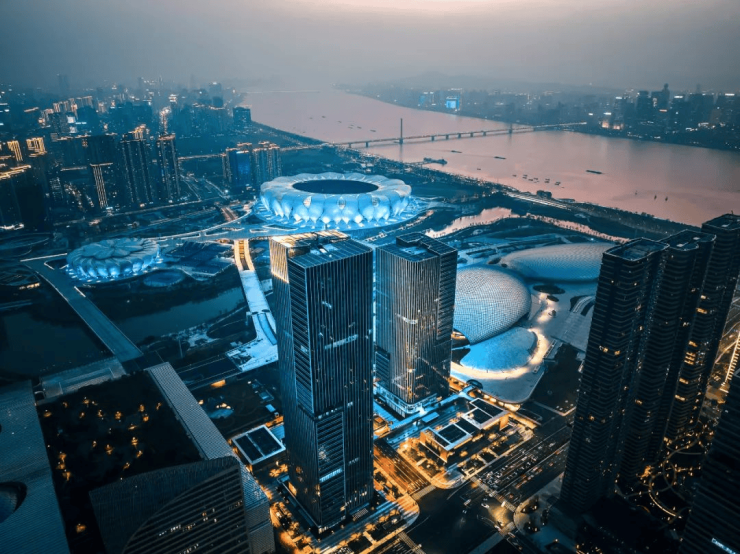 一面正对“日月同辉”和市民中心,没有偏角,更没有遮挡。杭州「新世纪中轴龙脉」正在这一视线上,自武林中心—市民中心—奥体中心,这一格局奠定了杭州整体城市的气运走向。
