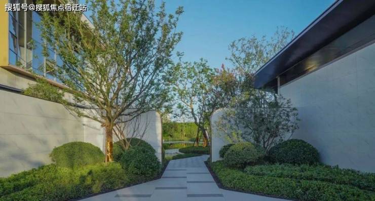 主入口采用简约大气的立面设计、极具现代感的线性流瀑以及精致利落的植物搭配,奠定了整个项目兼容东方诗意与西方艺术的清雅、至简的基调。