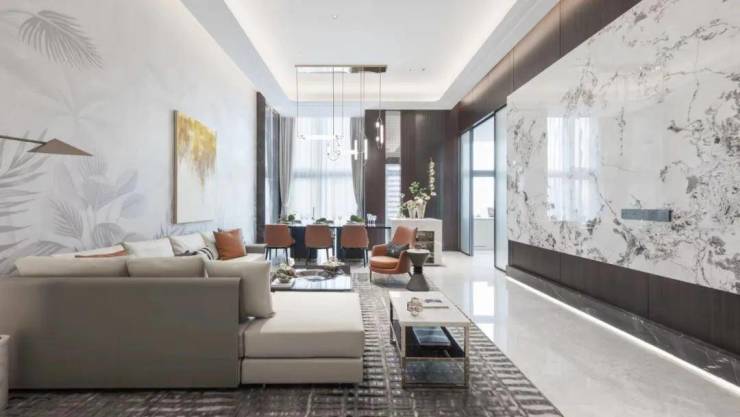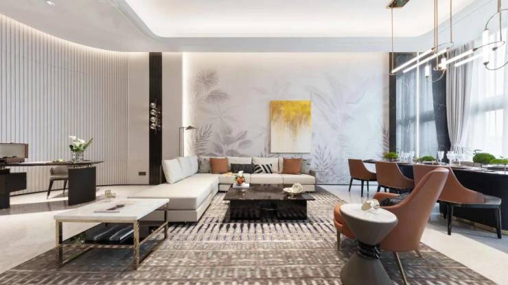 园区的内部配套齐全且高端,配备有地下会所、恒温泳池、健身房等,并且采用人车分流管理。走进房间内部,第一眼就令人惊叹的,是高达4.79米层高。这样的大层高,最能营造出空间上的奢阔感。不仅如此,据置业顾问介绍,他们在118㎡的户型上还做了错层,客厅4.2米,房间5.4米,堪称神仙设计。