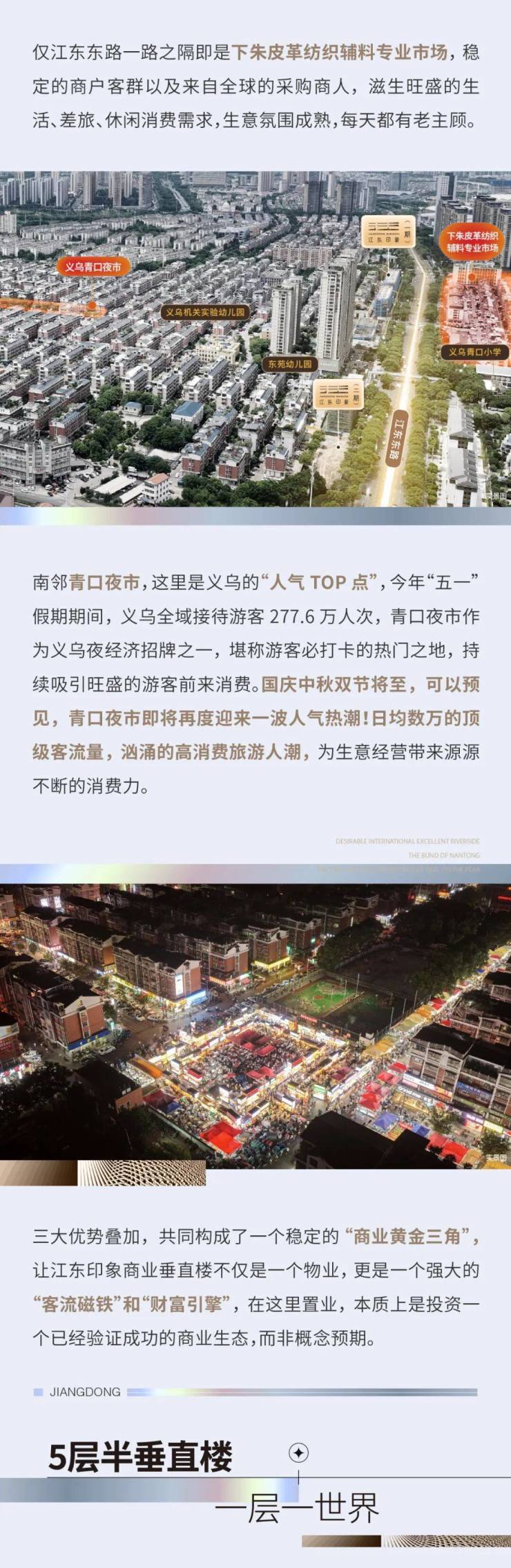至此,江东印象一期和二期形成为一个密切相联的整体,这座新E代财富综合体能级再提升,体量扩增至约6.5万m2,再添强大财富磁极!集结商住垂直楼、商业垂直楼、精品公寓、商务办公、沿街金铺等多元业态,相互支撑,共生共荣,一座头部企业云集、全球客商往来、精英人才出入、日常消费活跃、生意红火兴旺的义乌未来经济新中心,蓝图已现!