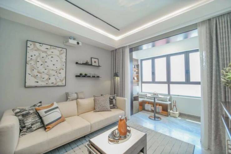 具体来看,样板间亮点十足。⼀体化餐客厅相连景观阳台,提升了整个空间的流畅性和通透感。考虑到越来越多的家庭有投影需求,大师样板间在软装搭配上,悉心添置投影仪和投影幕布,升级生活闲适体验,呈现了空间的更多可能性。