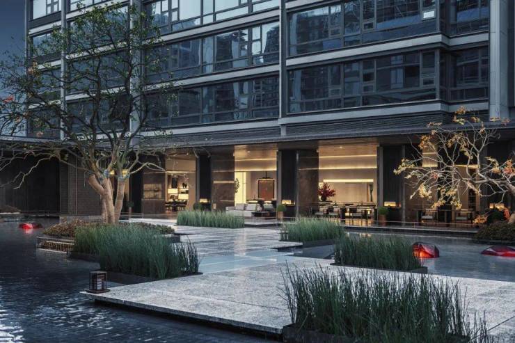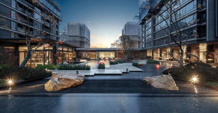 穿过归家大堂,映入眼帘的是项目的中庭水院。
