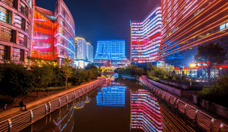 该条线路内还设有8个换乘站,便捷换乘1,2,4,5,16号线,通达全城,是不折不扣的宝藏线路。通过距离项目最近的站点出发,坐2站就是体量约180万方的杭州新天地!(据好找房数据显示:锦绣华府、文澜府今年已经有多套6万+/平房源的成交记录,包括新房也是,限价居高不下,据浙报传媒土地研究网显示:新天地商圈目前的新房限价在4.7万/平)(新天地购物中心夜景实景图)