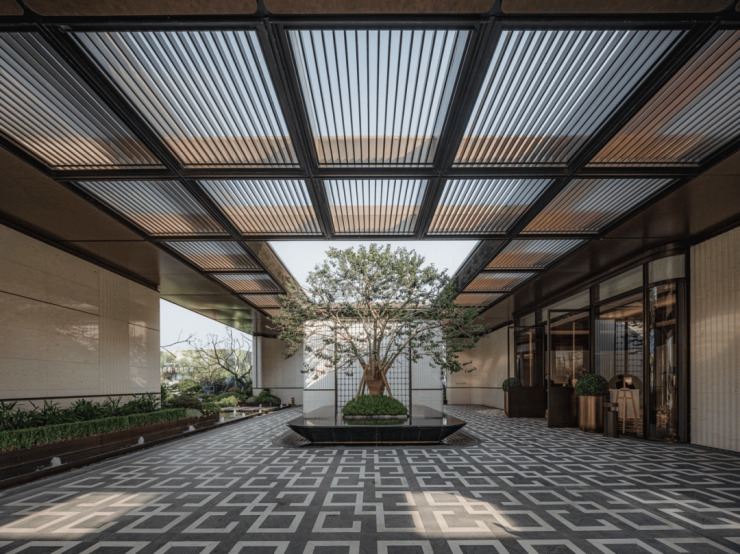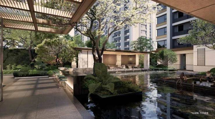 景观布局上,不得不说保利·虹桥和著更是令人惊艳!中庭的大树剧场,移植了超60年树龄的铁冬青,价值百万;约10米长的蓝钻大理石水景,由匠人手工精雕细琢;地面铺设爱马仕灰奢石拼花,尽显海派风情;奢适躺平水院,甄选西潘多拉和日出金霞发光石,宛如奢华酒店,未来业主可在此休憩、会客、社交,尽显豪宅排面。