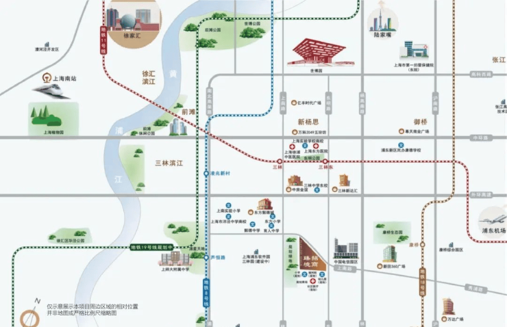 项目坐落浦东三林板块,紧邻前滩南,直线14公里内覆盖陆家嘴、徐家汇、新天地等核心CBD,堪称“浦东心脏”。自驾通过济阳路高架、中环线,30分钟直达全城繁华,通勤效率媲美内环!