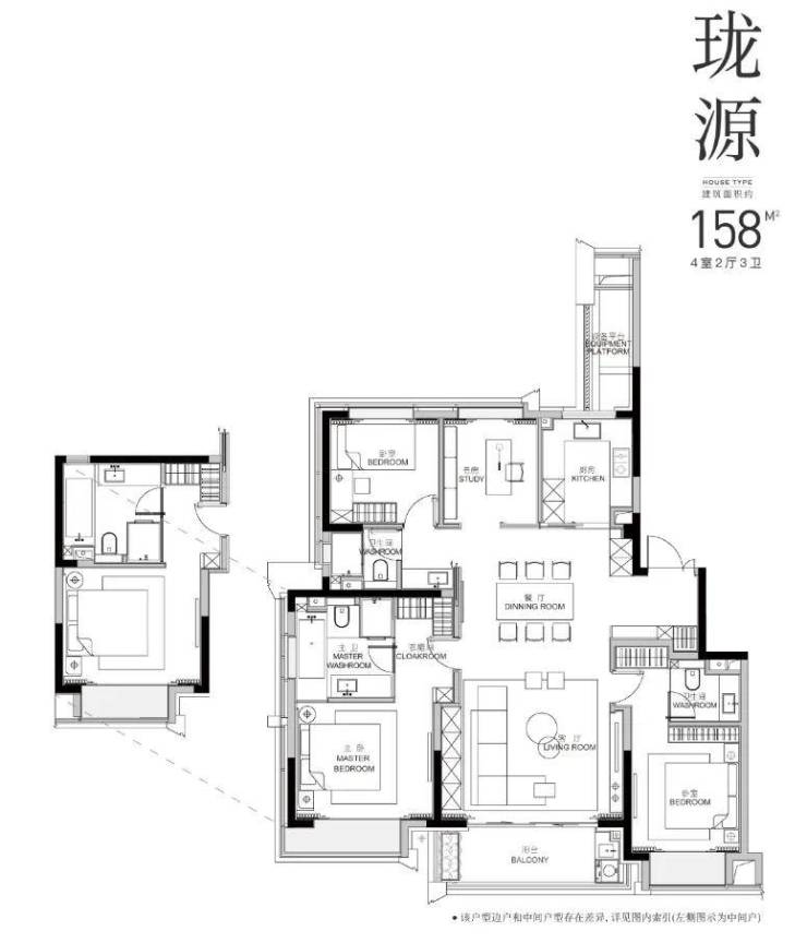 即使是全系最小的「珑源158」建面约158㎡户型,产品依然坐拥超越面积的尺度客厅,LDK一体化设计将餐厅、中西双厨融为整体,配合南向全景阳台,形成自带景观巨幕的互动空间,让居家就可以达到在五星级酒店度假的舒适感。