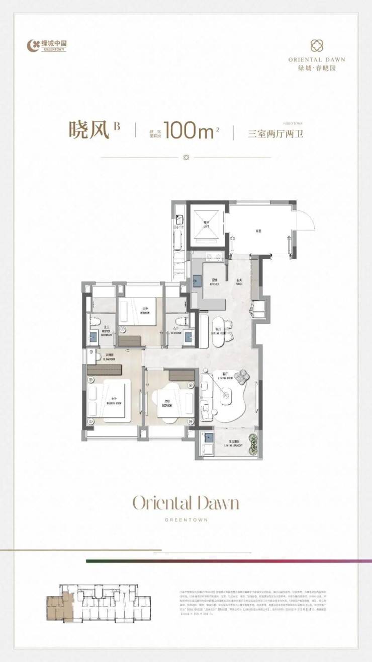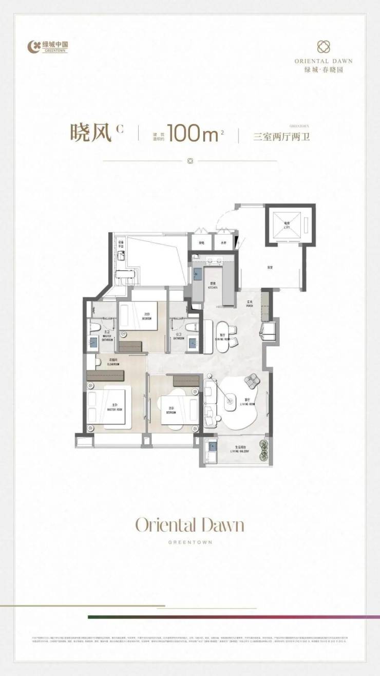 「晓风C丨 100㎡ 3房2厅2卫」
