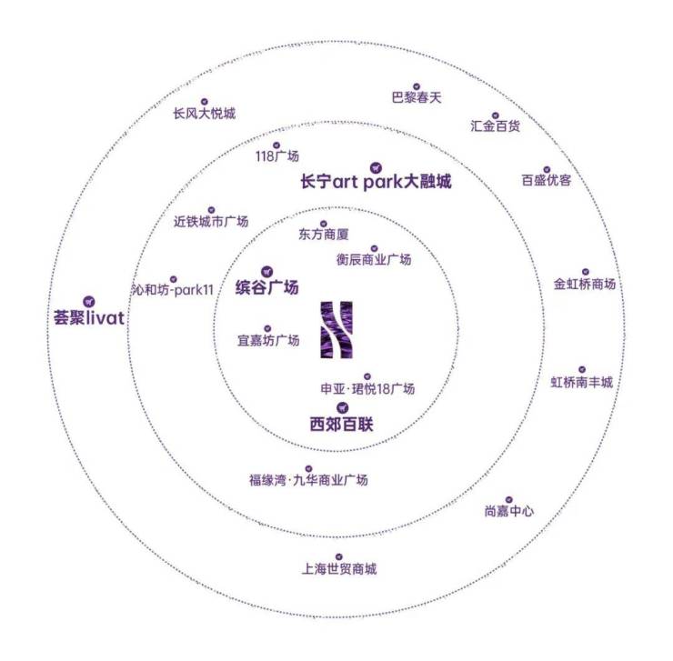 【3km】巴黎春天/金虹桥商场/汇金/百盛约2.5km、尚嘉中心/虹桥南丰城约2.8km、中山公园商圈约3.4km