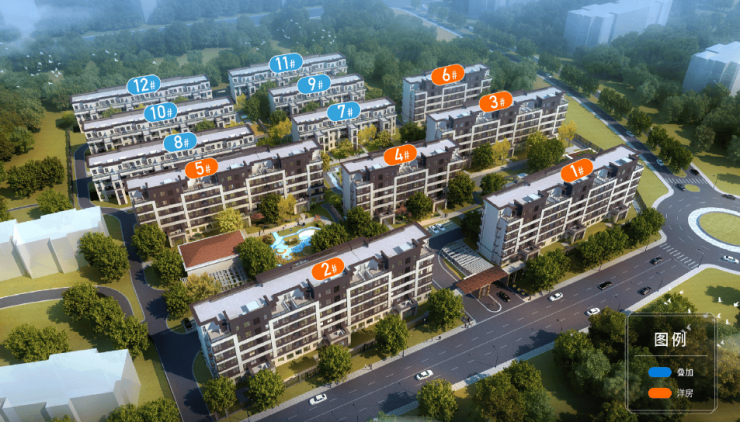 项目占地面积约2.8万方,总建面约3.2万方,容积率为1.12,绿地率高达36%,总户数278户,地下车位总共414个,车位配比约2:1,由6栋6F洋房、6栋4F叠拼组成,洋房建面约95㎡、叠拼建面约127-140㎡
