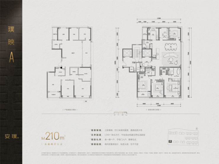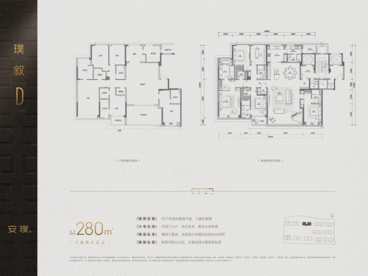 建面约240㎡、280㎡的五房,都罕见地做了南厅布局,LDKB一体的大公区,面积都超过了70㎡!