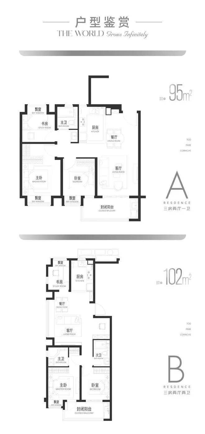三、爆款户型:95-143㎡全周期,高得房率 + 精装顶配