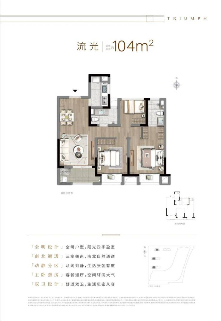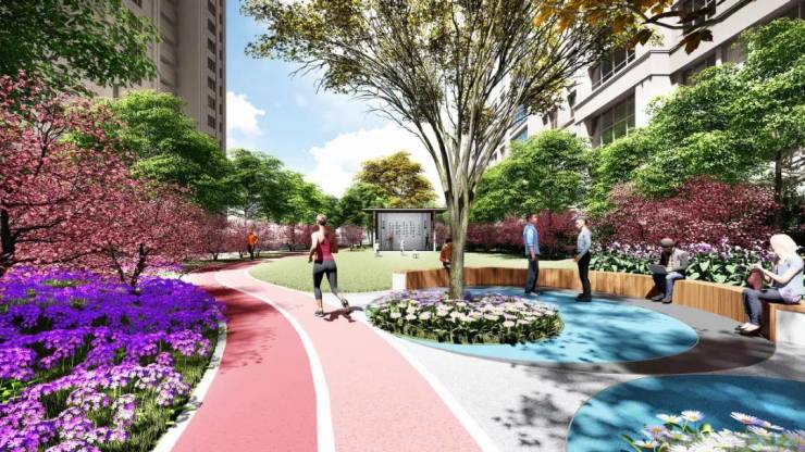 七、景观鉴赏 一轴一庭三进五园:景观轴、清韵庭、慧心园、中央花园、运动花园、童趣园、溢香园; 两环两廊两版块: 两环(市政慢行环、绿带隔离环) 两廊(城市形象廊、共享走廊) 两版块(住宅版块、枢纽版块)