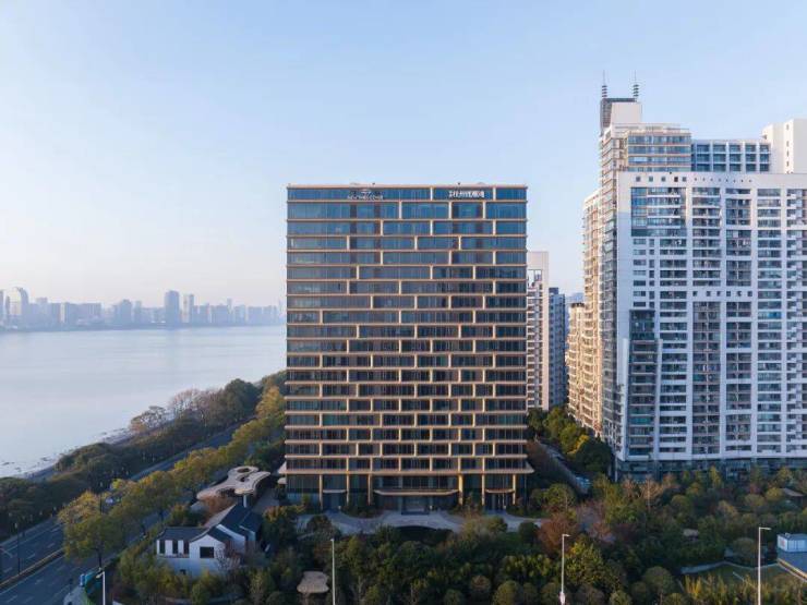 立面设计:金色铝板曲面线条+大面积玻璃幕墙,灵感源自钱塘江潮涌,获Architizer A+Awards全球建筑奖提名[[3][5][6]]。