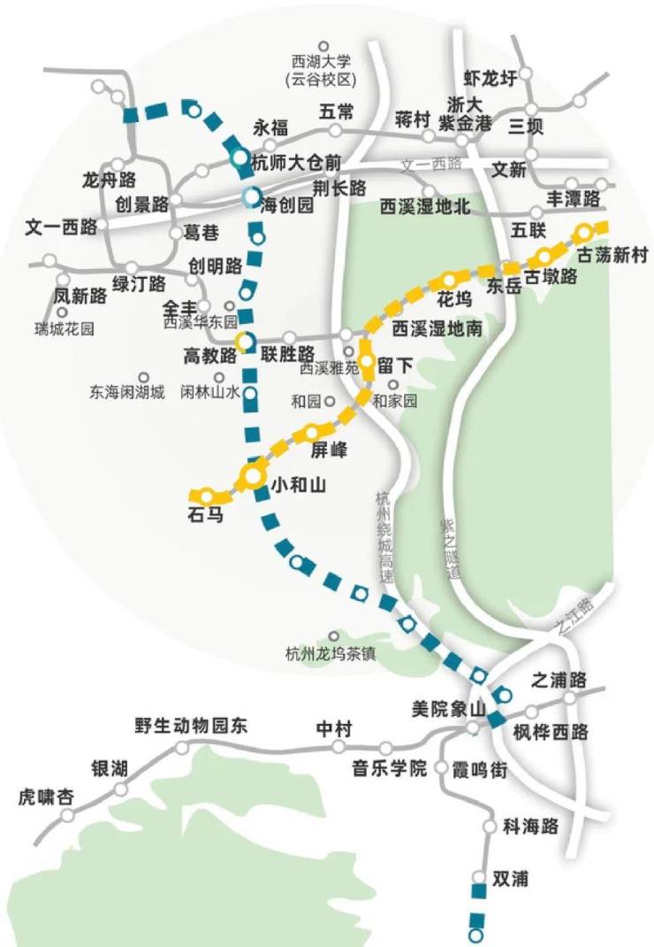 从小和山出发,经升级后的留和路,向东一脉直达天目山路,经天目山路向东贯通西溪湿地、黄龙、武林等区域。
