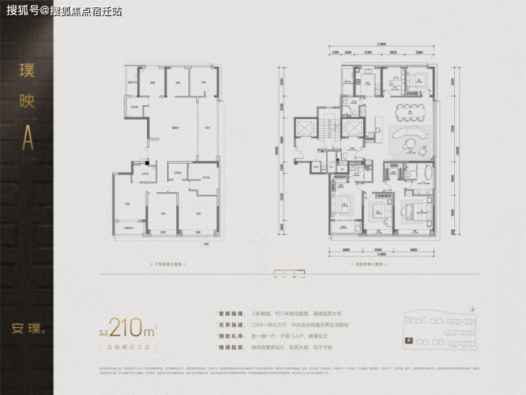 建面约240㎡、280㎡的五房,都罕见地做了南厅布局,LDKB一体的大公区,面积都超过了70㎡!