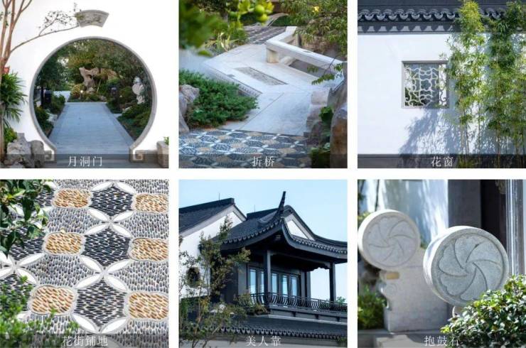 通过运用植栽及构筑物,不断细微地分隔、放大或转折空间,营造多层次的景观变化,同时花街铺地、飞檐戗角、花窗月洞……细节背后,秉承的是千年国风匠艺,取法极致,至臻完美。