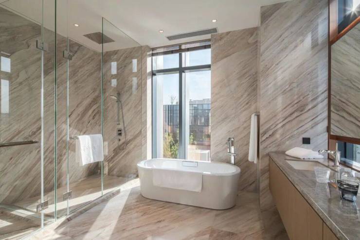 经纬商务官邸外墙采用超大落地玻璃,整个房间明亮通透,独栋官邸以“中正”、“经纬”为设计灵感,组合为灵动绰约的格调,中正平和又凸显强烈的质感,空间更加开阔,简洁又不失大气。