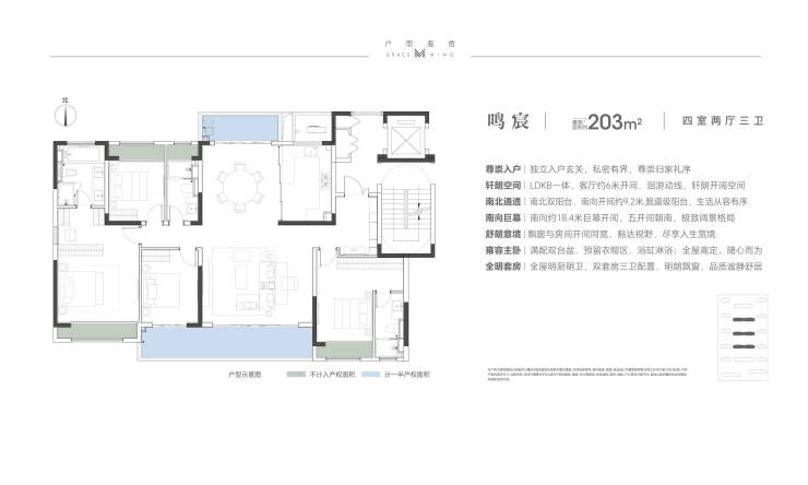 户型面积:建面约143㎡、170㎡、203㎡