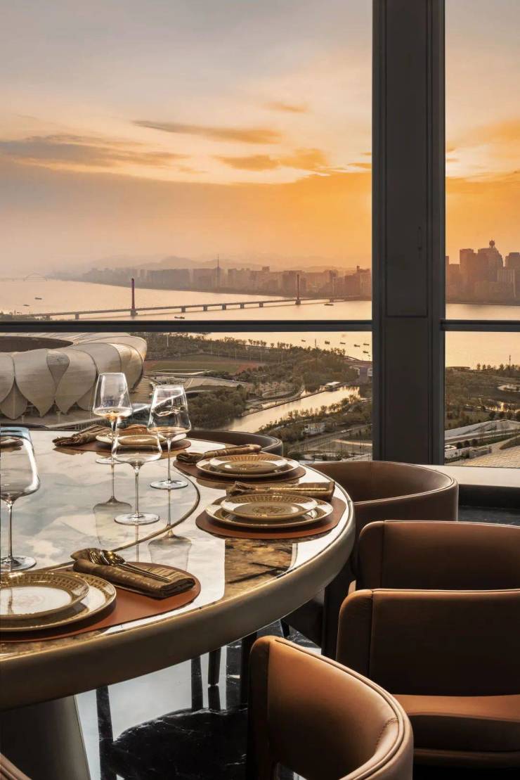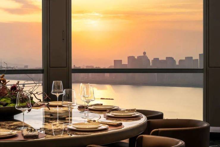 晨曦阳光如金洒落钱塘江,片片粼光盈动,安坐“潮·Brunch”,江畔宁静,江风轻拂,享受酒店名厨主理珍馐美食。