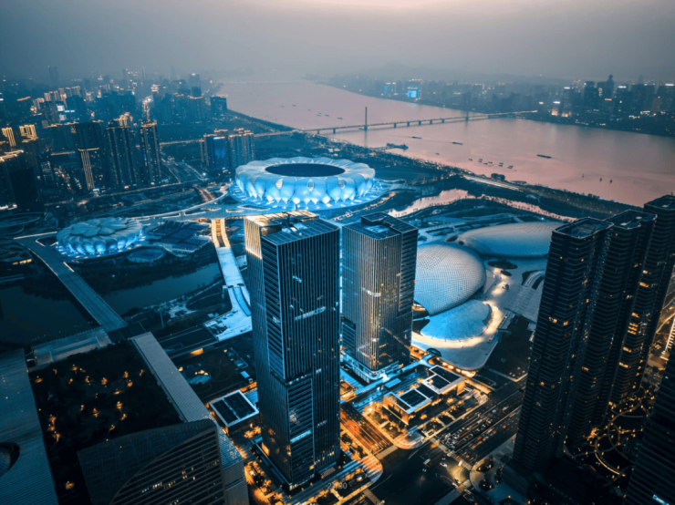 奥体场馆平台无界互通,在此迎风晨跑,享受钱塘江岸的宁静思绪,跑过大小“莲花碗”,跑过“大墨镜”,在亚运赛事场馆间穿行,仿佛能聆听到这个时代最澎湃的心跳。