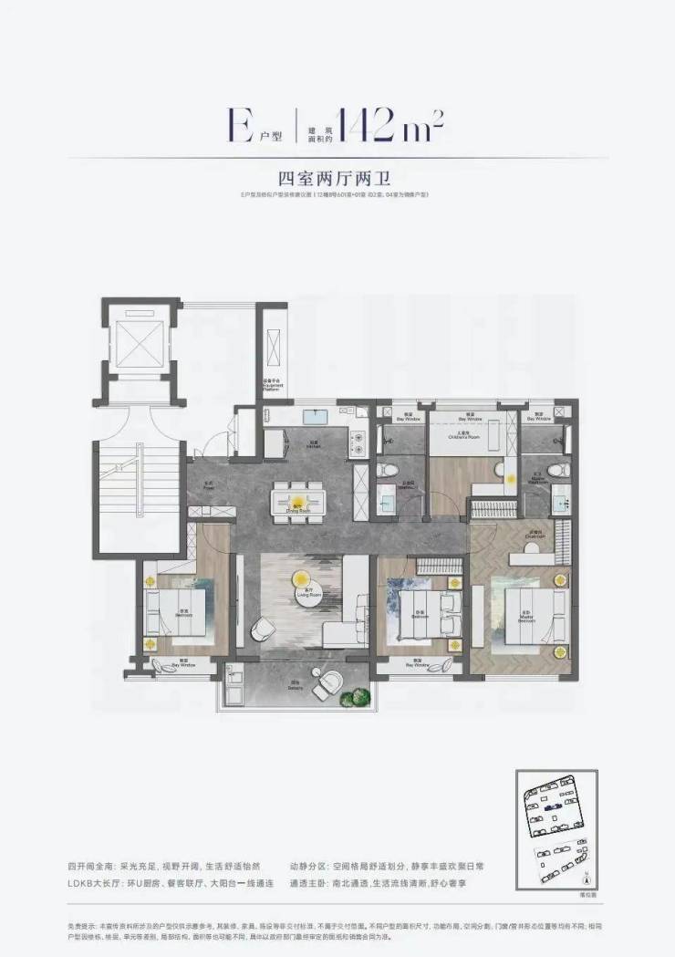 而E户型142㎡则是样板间的户型。看过样板间的同学应该都记忆犹新,