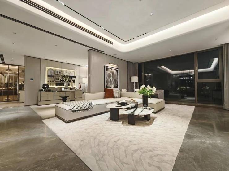 整个约142㎡的样板间,动区尺度非常宽敞,4个房间也都可以住人,这个面积段对于大多数人来说都是很舒适的改善空间了。