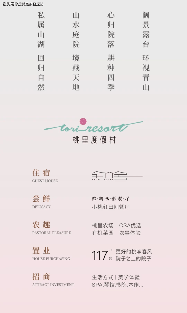 这里,我们打造了一个以健康生态为主题的度假村——桃里度假村。它不仅是一座生态酒店,更是一个集健康生态餐饮、生命促进疗愈、禅修体验、农文旅运动、非遗在地文化、绿色农场等多元服务内容于一体的度假胜地。桃里度假村致力于满足不同年龄段客户的身心健康需求,无论是新市民还是原住民,都可以在这里找到属于自己的心灵家园。