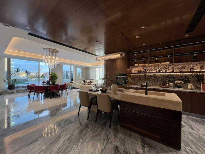 踏入鑫湾甲邸,首先映入眼帘的便是那挑高 9 米的恢弘大堂。全石材铺设的地面与墙面,质感十足,彰显着奢华与大气。大堂中央,精心设计的水系景观灵动活泼,潺潺流水声仿佛在诉说着生活的诗意与美好。这样的大堂,不仅是归家的第一站,更是身份与地位的象征,为每一位业主带来极致的尊崇体验,让您每次回家都成为一场荣耀之旅。