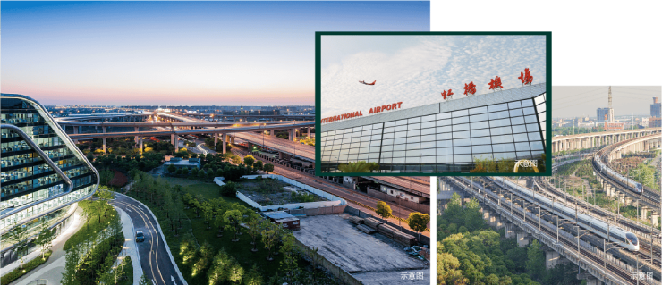 高铁/空港:依托虹桥交通枢纽,高铁快速连通长三角各大城市,直飞航班覆盖东亚、南亚;