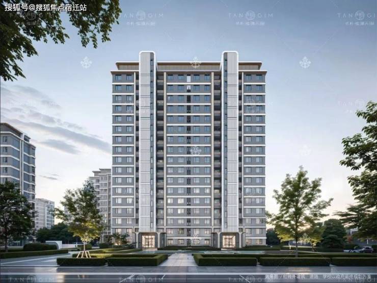 南侧外立面采用铝板线条+大面积玻璃,纯净干练,让建筑更有美感。东西山墙及北侧立面材质也做了升级,由传统的水包水,全系升级为更贵的水包砂材质,更具品质和造型美感。