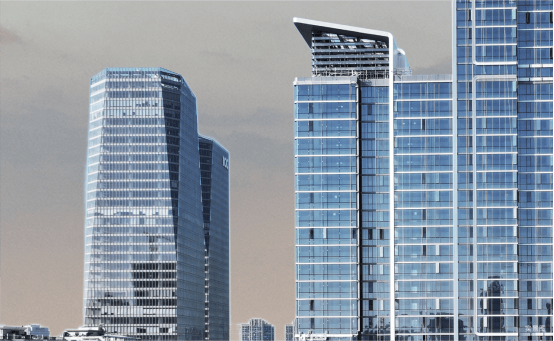 武汉城建·中央云城延续黄鹤楼翘角飞檐灵感,以横向金属构件,让建筑成为点亮武汉天际的地标符号,并曲面玻璃及铝板,以温润如玉的表达,柔化建筑,构筑钻感LOW-E全玻璃幕墙,倒影天空自然与百年璀璨。