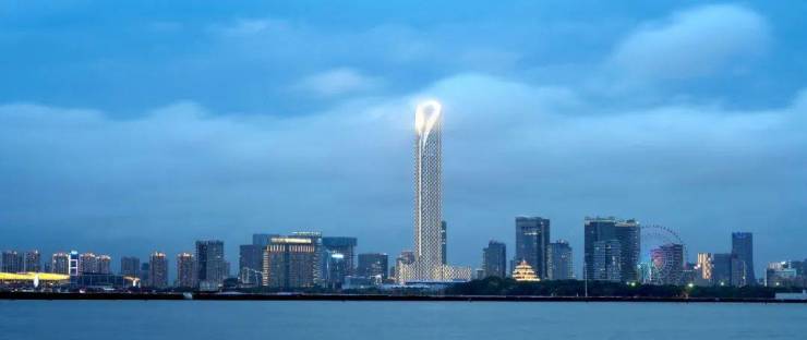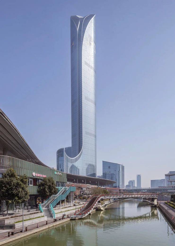 苏州国际金融中心高450米,是定义苏州城市天际线的地标。形态设计灵感源自鱼——在中国传统文化中,鱼是兴旺繁荣的象征。这一形象很适合这座苏州最高的地标建筑。