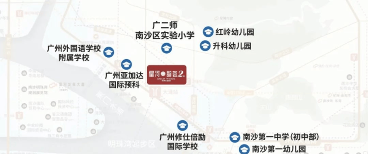 幼儿园: 南沙区第一幼儿园(省一级)、升科幼儿园、红岭幼儿园、项目配建幼儿园(建设中)