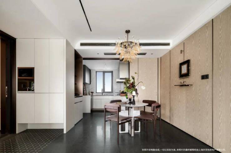 该户型拥有类独立电梯厅,归家更私密。独立玄关,让出入更具仪式感的同时,增加了收纳空间。