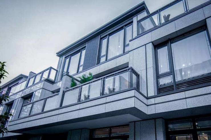 2.外立面:排屋为大面积石材加金属嵌条,部分真石漆;叠排为真石漆;