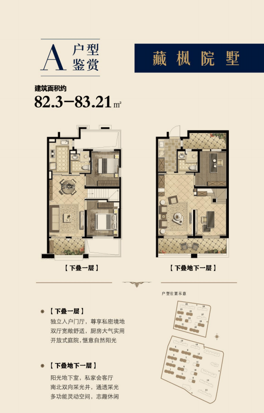 而叠墅产品中,最小户型建面约82平的下叠,总价还不足300w起!